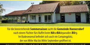 Für die bevorstehende Sommersaison sucht die Gemeinde Hannersdorf nach einem Pächter fürs Buffet beim NAturBAdeparadies BUrg.