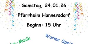 Der SV Hannersdorf lädt herzlich zum Faschingsumzug und anschließend zur Faschingsbar am Sportplatz ein!