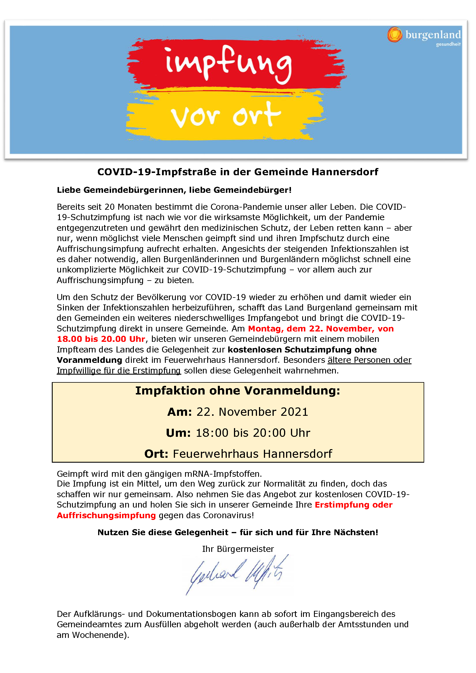 COVID-19-Impfstraße in der Gemeinde Hannersdorf