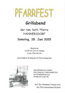Heilige Messe um 16:00 Uhr in der Pfarrkirche mit anschließendem Grillabend im Pfarrhofgarten