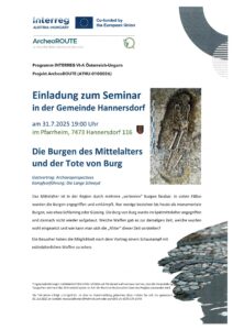 - Einladung zum Seminar in der Gemeinde Hannersdorfam 11. April 2025. 18:00 Uhr im Pfarrheim, 7473 Hannersdorf 116 Die Römer am Badeteich: Neue Untersuchungen zur kaiserzeitlichen Fundstelle in Burg