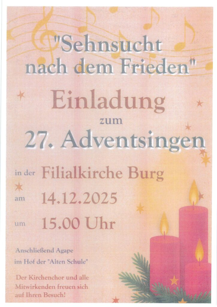 “Sehnsucht nach Frieden” – Adventsingen in Burg am 14.12.2025